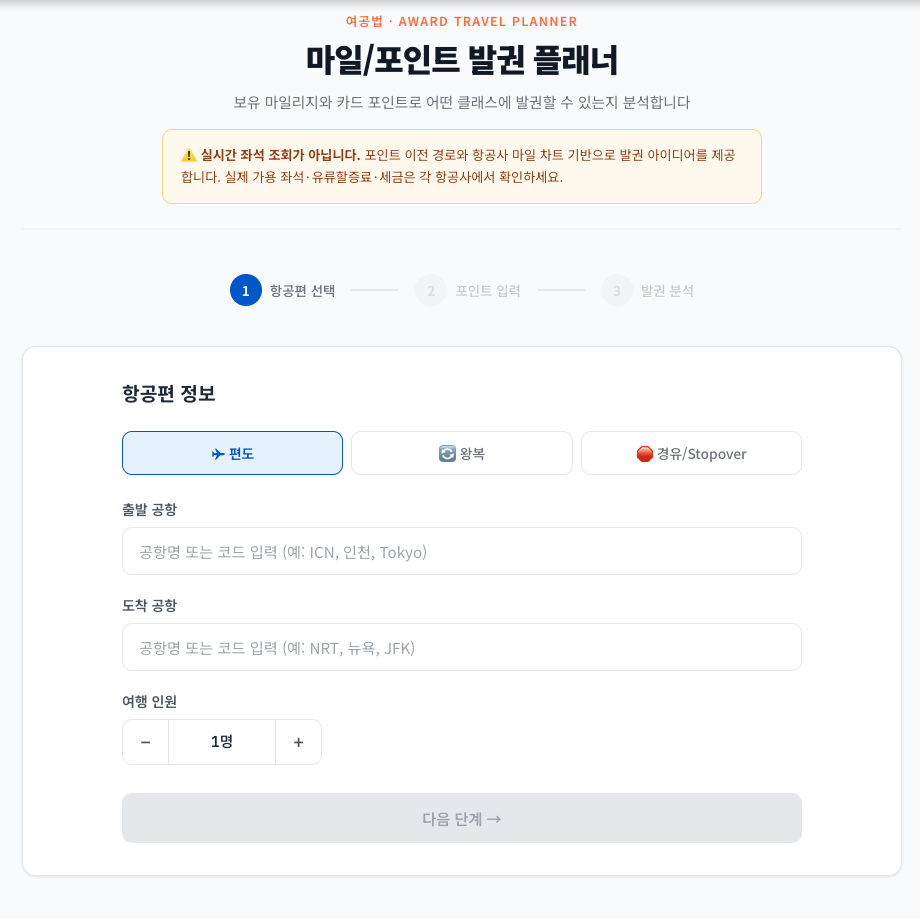 마일/포인트 항공권 발권 플래너