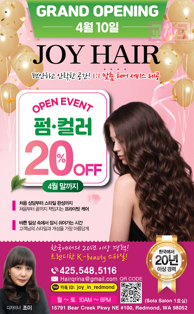 [JOY HAIR] 그랜드 오프닝 이벤트! 펌, 컬러 20% OFF🔥