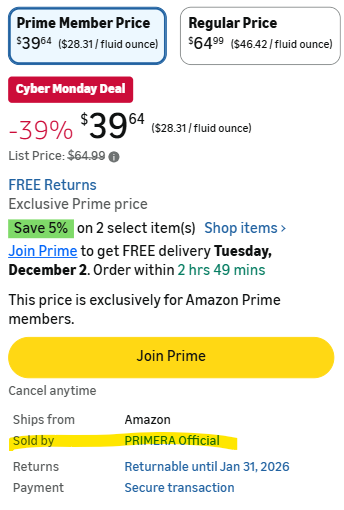 프리메라 : 구매 버튼 밑에 PRMR Official