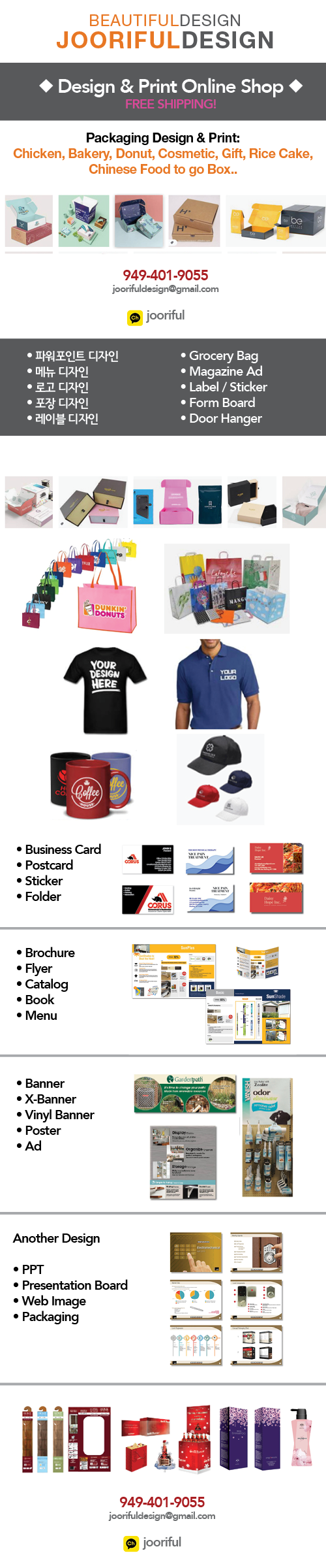 치킨박스, 베이커리, 도넛 박스, 페케징 디자인, 페케징 제작, 카탈로그디자인, 브로셔 디자인, 메뉴디자인, 모자 프린트, 티셔츠디자인, 로고 디자인 박스디자인 & 제작