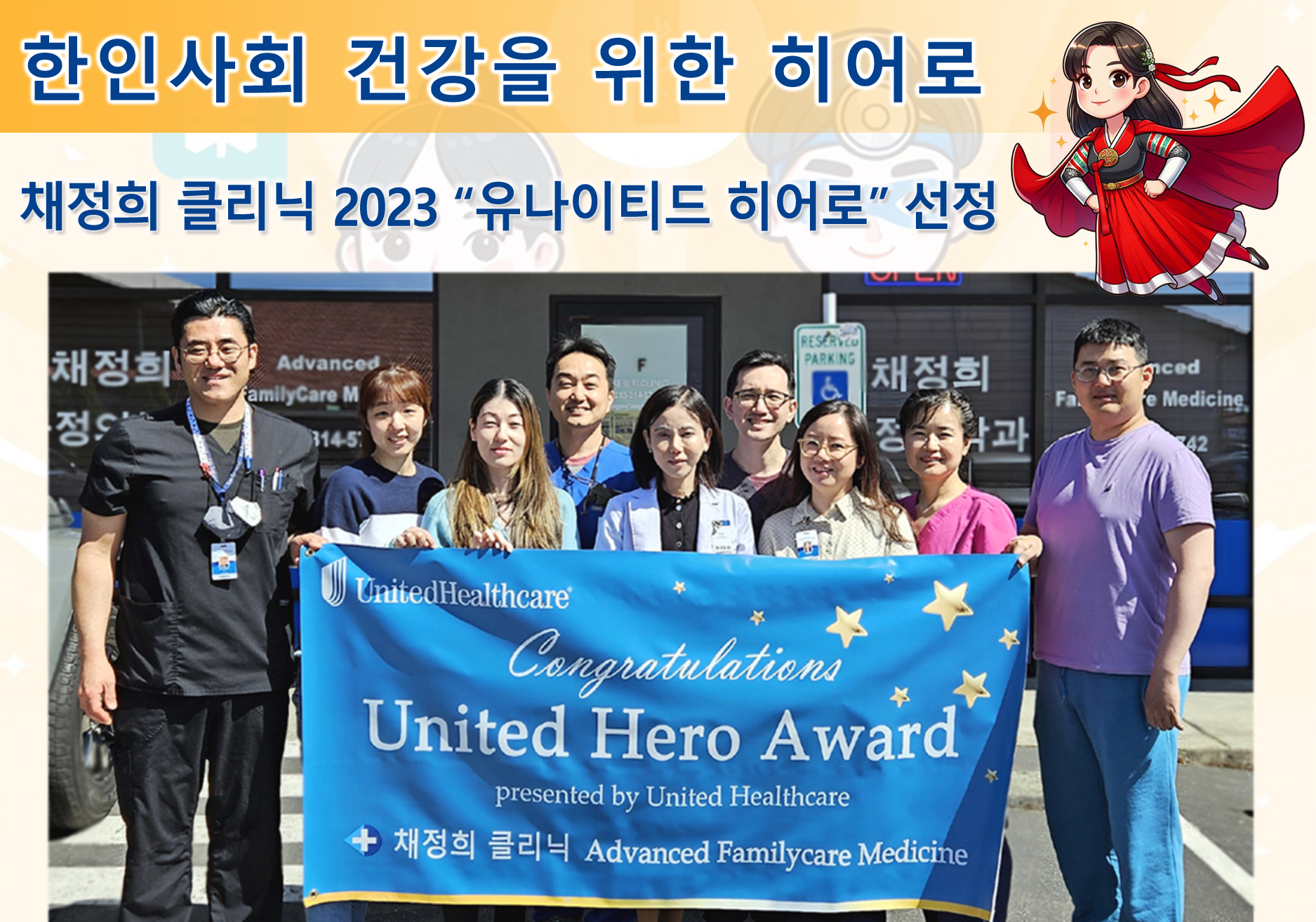 안녕하세요, 채정희 클리닉은 2023-24년 전미심장협회 워싱턴 지부 3개부분 수상과 더불어, 2023-24년 유나이티드 헬스케어 유나이티드 히어로에 선정된 주치의 병원입니다. 한국어와 영어를 모두 구사하는 직원을 구하며 자세한 내용은 다음과 같습니다.