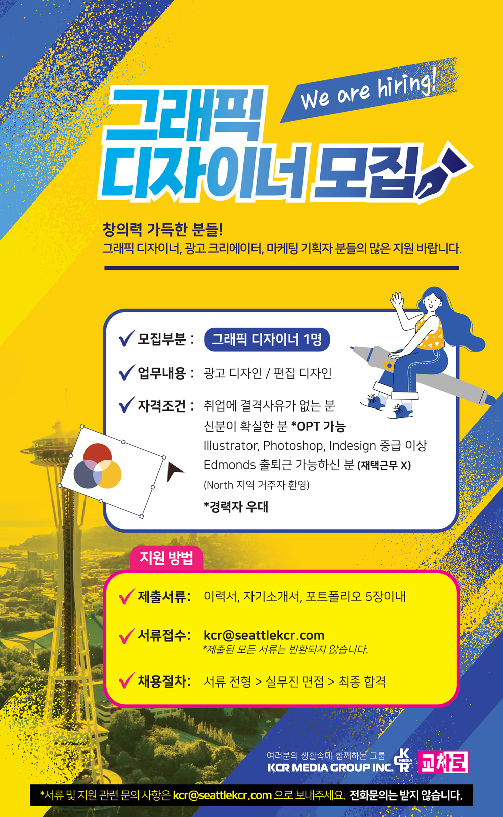 와우시애틀/Seattle Korean Weekly 그래픽 디자이너 모집🎨