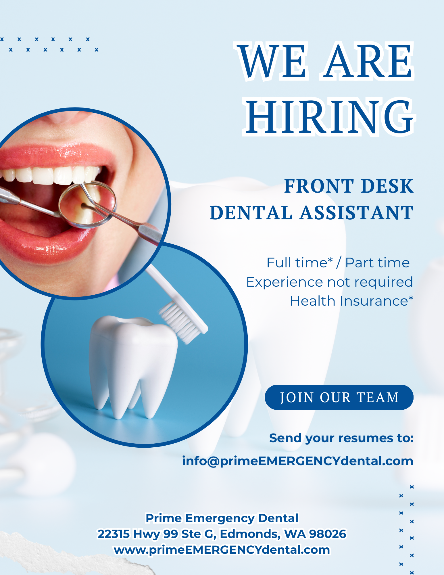 이력서 → info@primeEMERGENCYdental.com