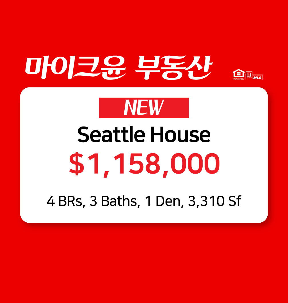 [NEW] Seattle House 가격 : $1,158,000 8500 S 116th St4 BRs, 3 Baths, 1 Den, 3,310Sf,2 Cars, 2022yr, 새집 보다 […]